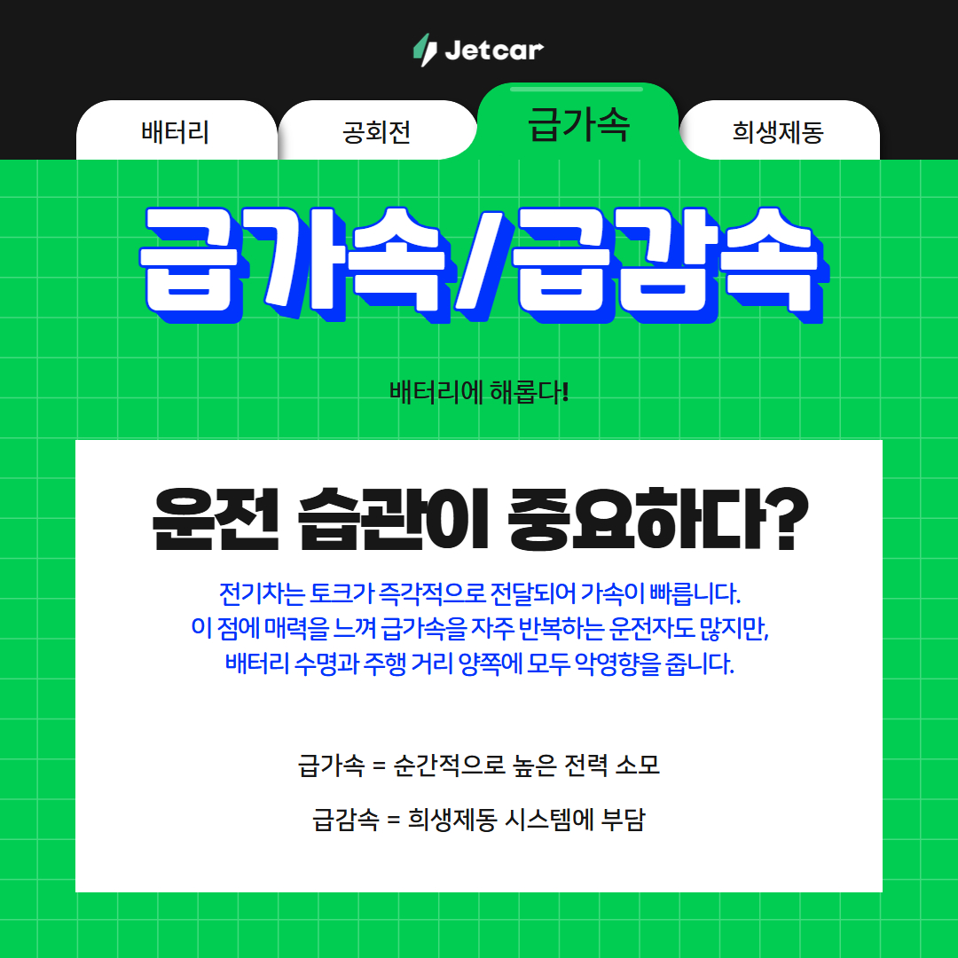 전기차는 토크가 즉각적으로 전달되어 가속이 빠릅니다. 이 점에 매력을 느껴 급가속을 자주 반복하는 운전자도 많지만, 이는 배터리 수명과 주행 거리 양쪽에 모두 악영향을 줍니다.