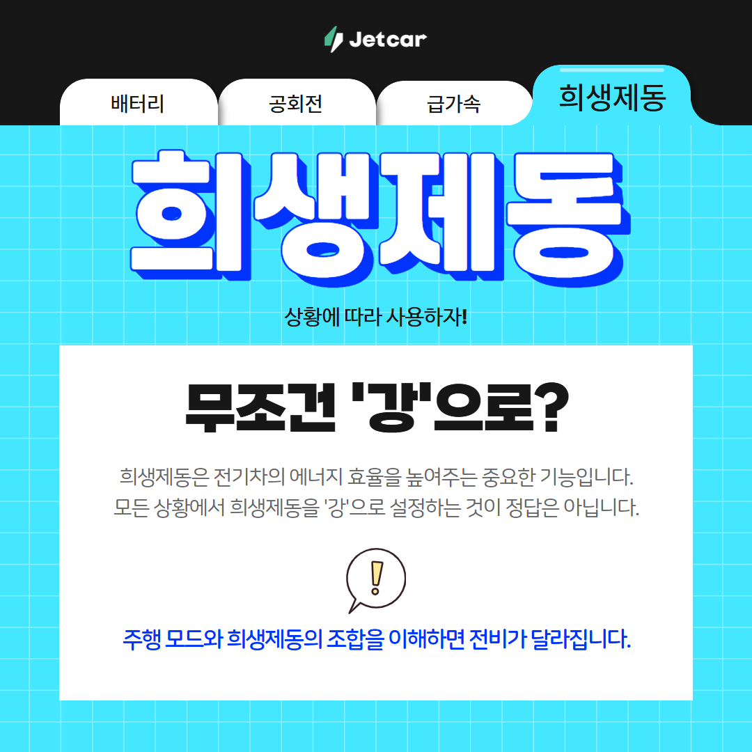 희생제동은 전기차의 에너지 효율을 높여주는 중요한 기능입니다. 그러나 모든 상황에서 희생제동을 '강'으로 설정하는 것이 정답은 아닙니다.
