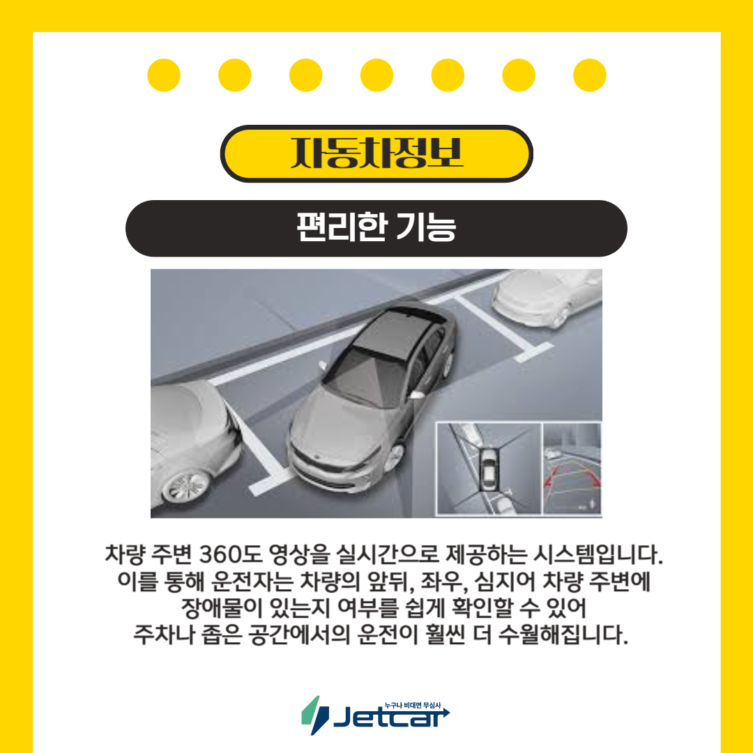 또한 어라운드뷰는 주차 보조 시스템과 함께 작동하여, 주차 시 운전자가 더욱 정확하게 주차선을 맞추는 데 도움을 줍니다. 주차 공간이 좁거나 다른 차량이 가까운 곳에 있을 때 매우 유용한 기능입니다.