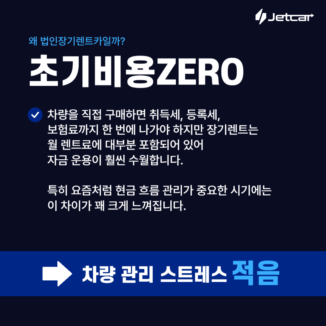 법인장기렌트카의 가장 큰 장점은 초기 비용 부담이 거의 없다는 점입니다. 차량을 직접 구매하면 취득세, 등록세, 보험료까지 한 번에 나가야 하지만, 장기렌트는 월 렌트료에 대부분 포함되어 있어 자금 운용이 훨씬 수월합니다. 특히 요즘처럼 현금 흐름 관리가 중요한 시기에는 이 차이가 꽤 크게 느껴집니다.