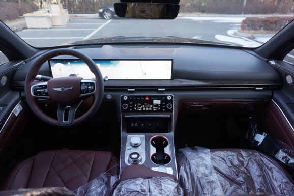 특히 눈에 띄는 포인트는 보르도 브라운 시트입니다. 실내에 들어서는 순간 느껴지는 고급스러움이 상당합니다. 블랙이나 베이지보다 한단계 더 세련된 느낌이라, 임원 차량이나 대표 전용 법인장기렌트카로도 정말 잘 어울리는 옵션입니다. 이런 디테일 하나가 회사의 이미지를 자연스럽게 끌어올려 줍니다.