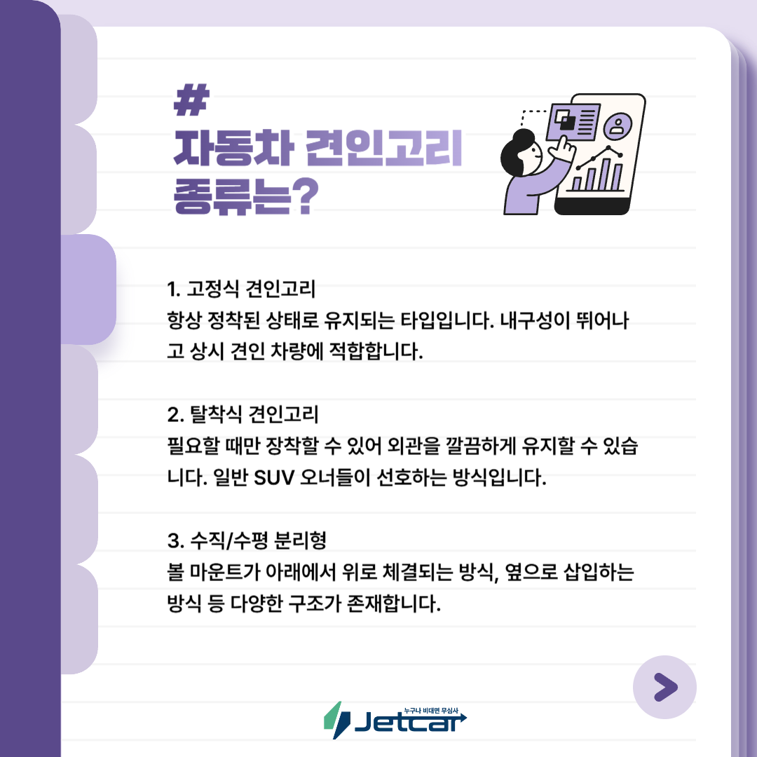 자동차 견인고리는 크게 몇 가지 타입으로 나뉩니다.