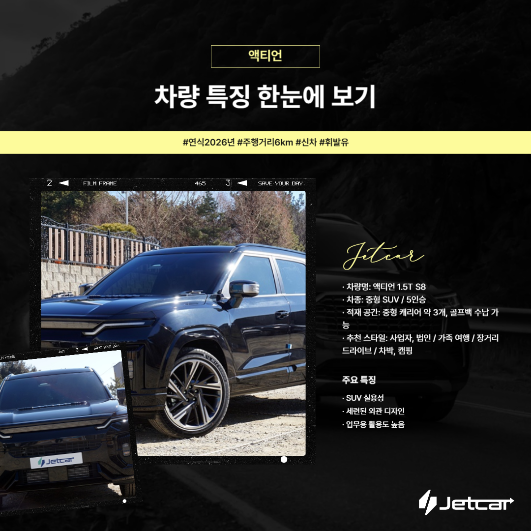 합리적인 비용과 실용성을 중시한다면 액티언 1.5T S8이 좋은 대안입니다.